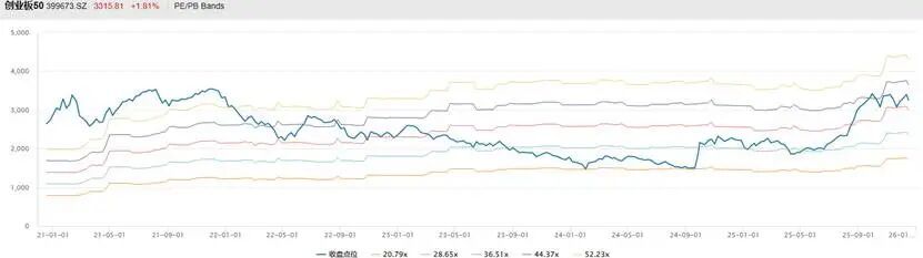 截至25年12月16日,创50 PE 41.03倍,较年初29.59倍呈现拉估值的行情。年初至今累计上涨53.1%。