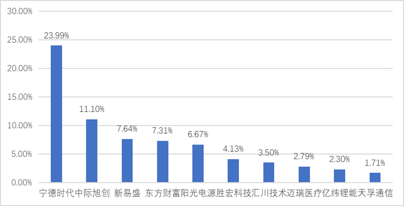 与美股七姐妹市值占比日趋提升类似,创50亦存在强者愈强的情况。5年前,前5大成分股权重占比39.52%,前十大成分股权重占比合计56.97%;