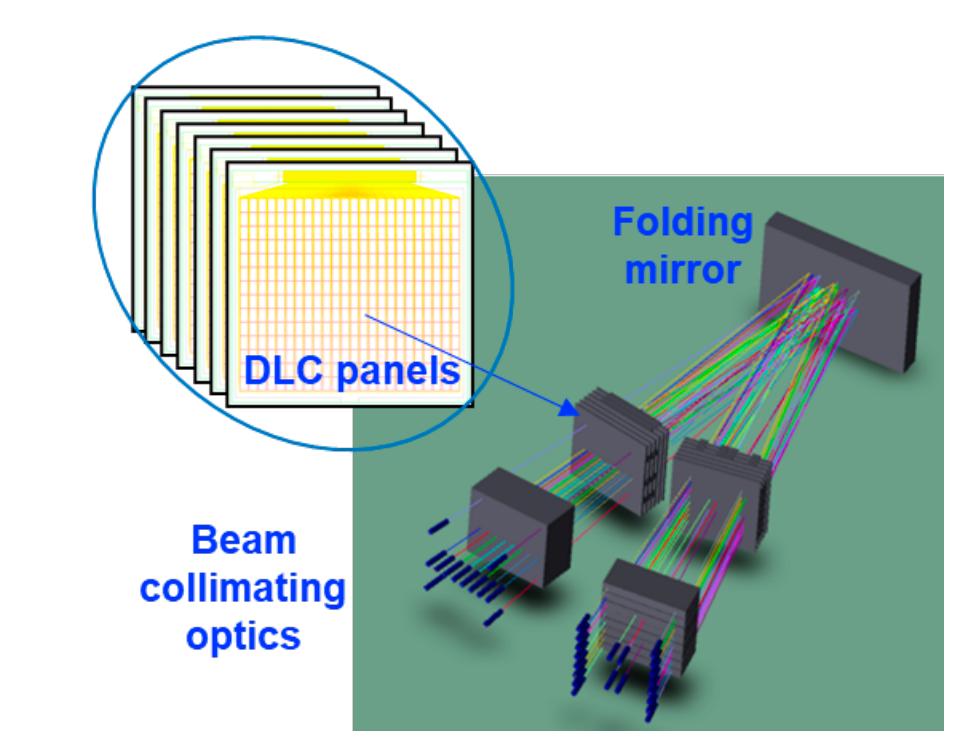 图 2: 采用液晶像素阵列的三维自由空间光交换机原型结构示意图