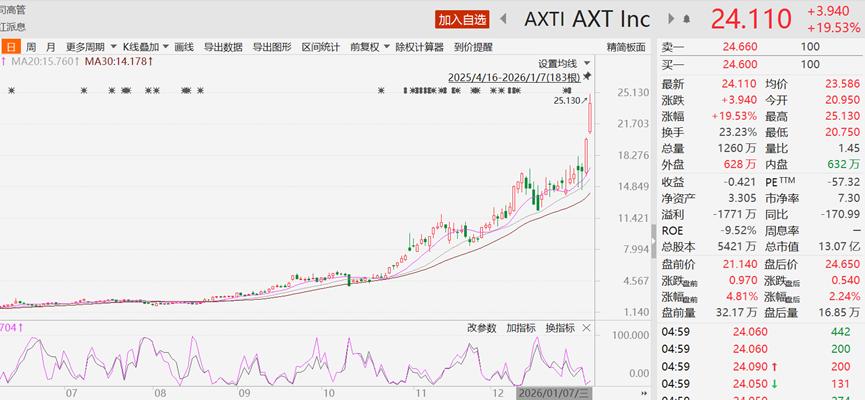 当地时间周三,美股磷化铟(InP)概念股AXT Inc涨近20%。