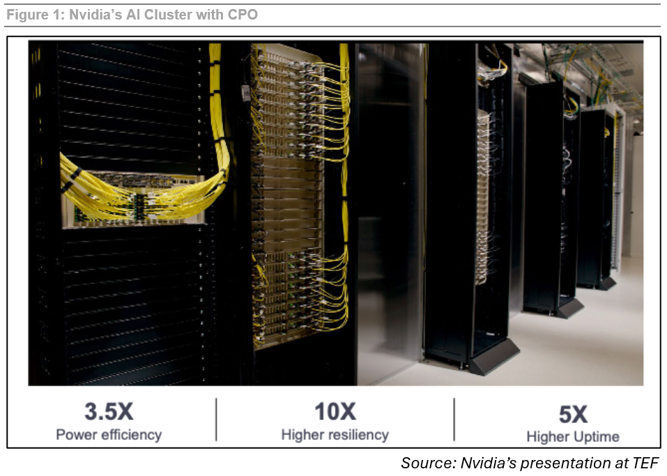 过去的一年,“老生常谈”的CPO迎来可喜进展。2025年3月,英伟达在GTC 2025上宣布在其InfiniBand和以太网交换机中采用单通道200G的CPO技术。LightCounting表示,英伟达的入局将为CPO生态注入强心剂,是CPO漫长征程的第一步。