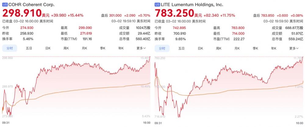 C114讯 3月3日消息(水易)当地时间3月2日,英伟达分别与光通信领域的龙头企业Coherent和Lumentum签署多年战略合作协议,轰动整个光通信产业链。Coherent股价大涨15.44%,Lumentum股价大涨11.75%。