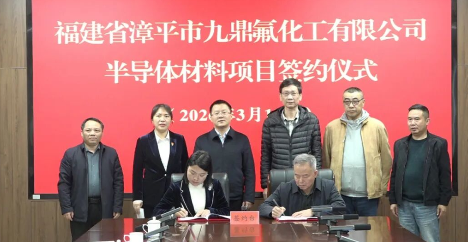 3月18日,福建省漳平市九鼎氟化工有限公司(以下简称“九鼎氟化工”)半导体材料项目签约仪式举行,项目正式落地宜章经开区。