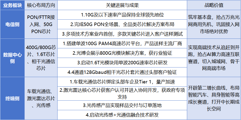 优迅股份的业务布局清晰而富有层次感:电信侧筑牢基本盘,数据中心侧攻坚高成长,终端侧布局未来。三大赛道在2025年均取得了实质性进展。