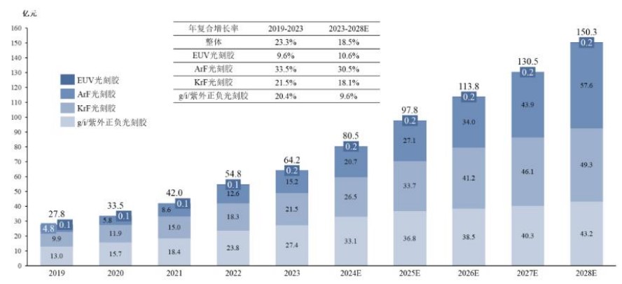 国内2019-2028年半导体光刻胶市场规模分析,数据来源:Frost&Sulliva