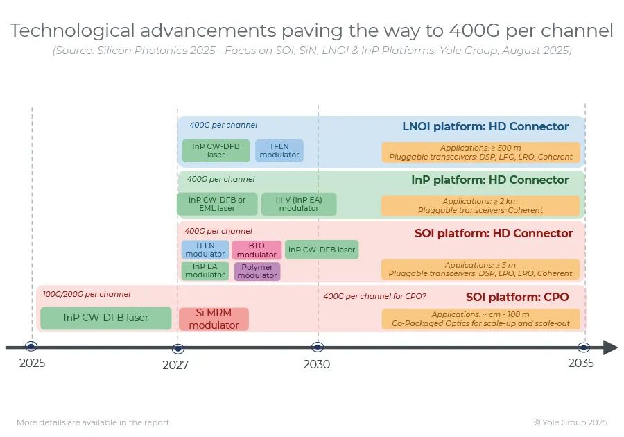 初创企业/设计公司(Xphor、DustPhotonics、NewPhotonics、OpenLight、POET Technologies、Centera、AyarLabs、Lightmatter、Lightelligence、Nubis Communications)持续创新。